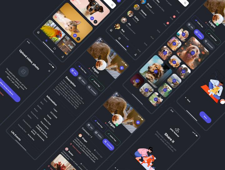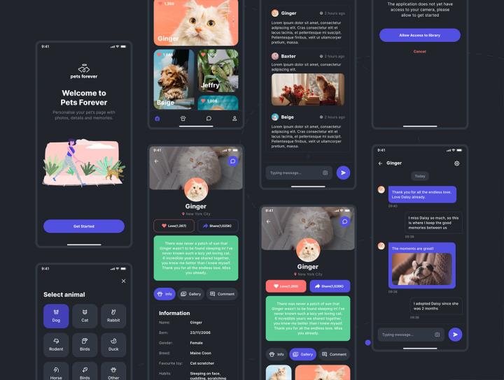 明暗72页纪念已故宠物的app应用程序figma源文件