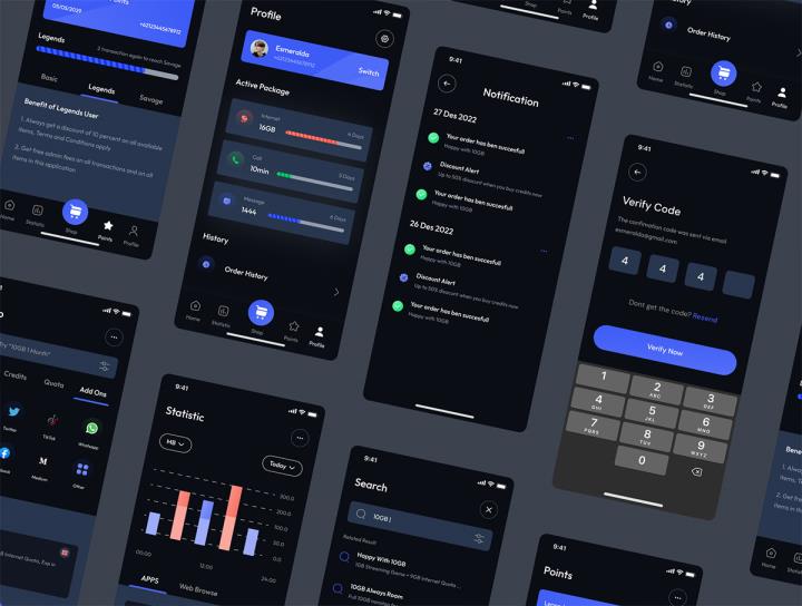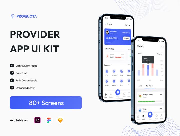 80页明暗模式互联网提供商应用程序app设计Figma、Sketch 、 XD源文件