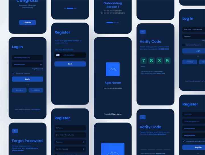 80页明暗模式互联网提供商应用程序app设计Figma、Sketch 、 XD源文件