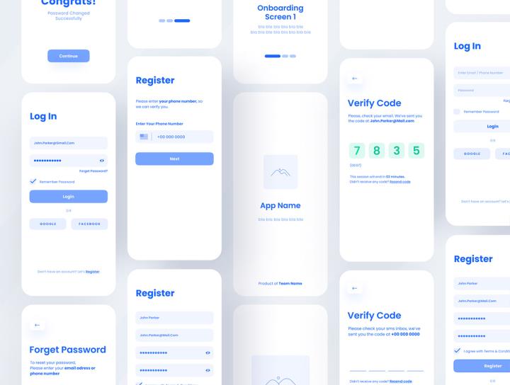 36页中保真度登录和注册页设计app线框套件figma源文件