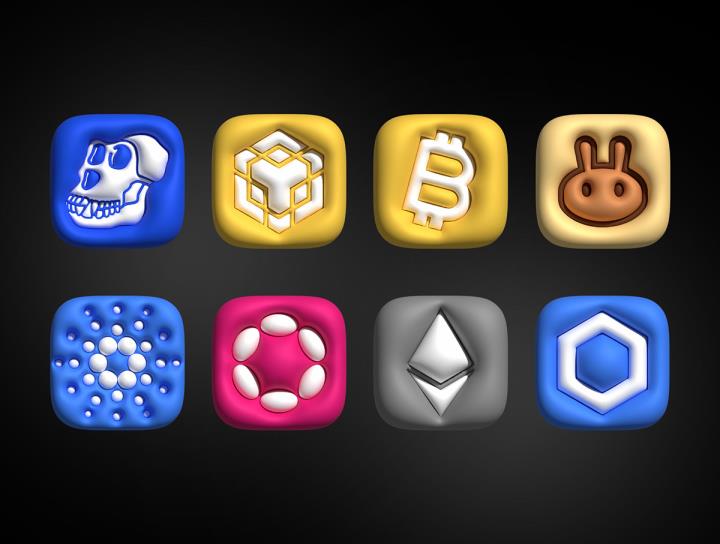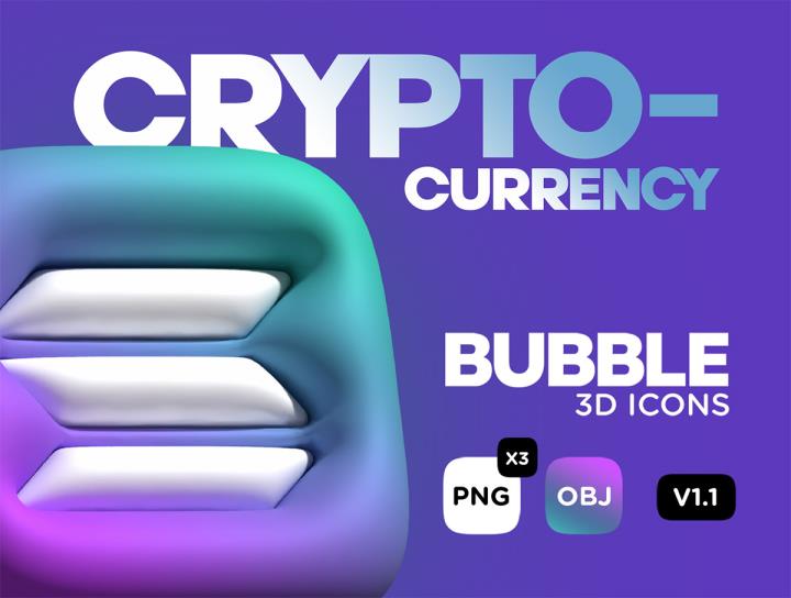 30个3D泡沫包-加密货币图标- PNG,3D文件- OBJ格式