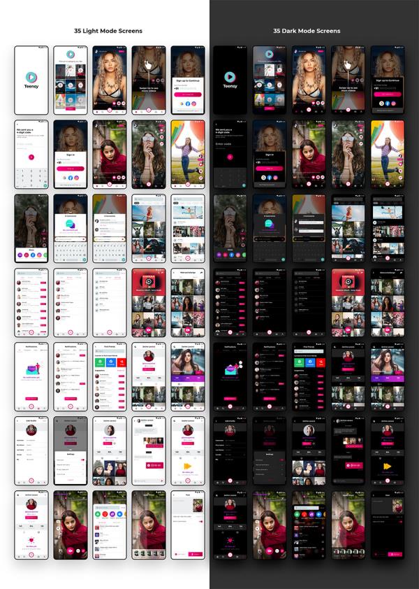 70页明暗社交媒体移动应用程序设计XD源文件