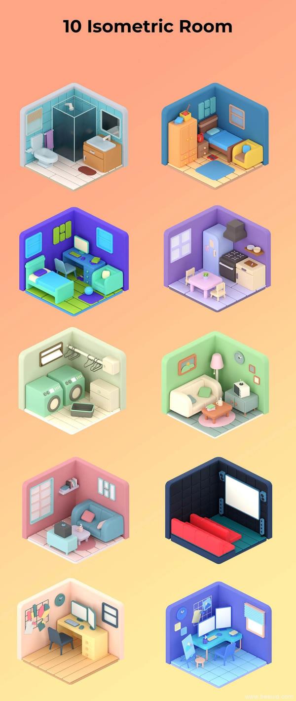 10个3D房屋场景素材blend,Gltf,obj,png格式