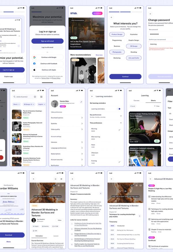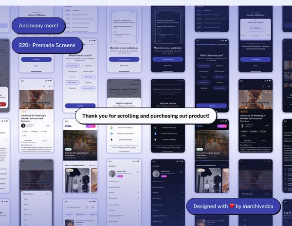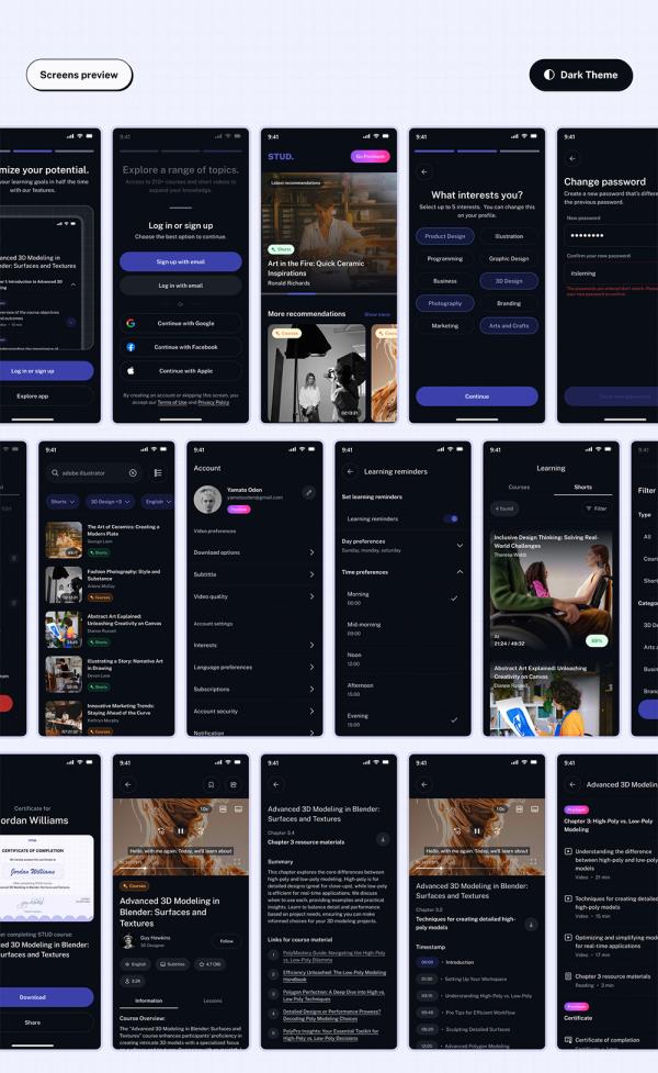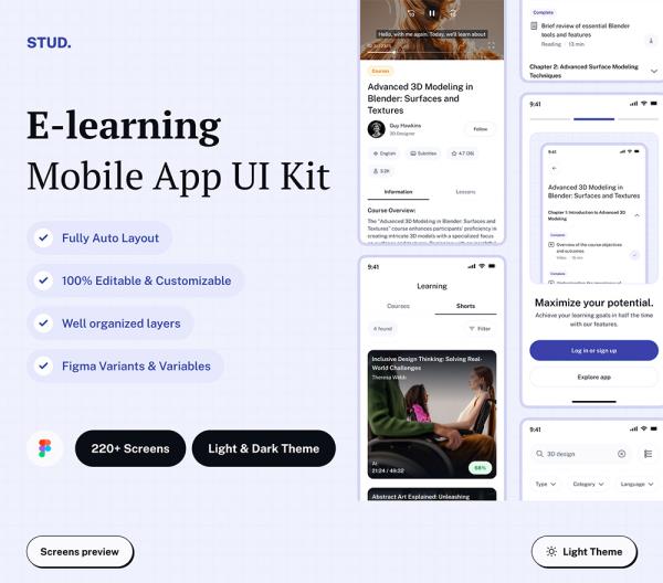 220页明暗模式在线课程和电子学习移动应用UI工具包figma源文件