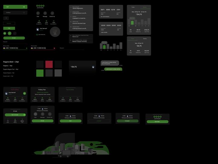 24页明暗设计出租车,快车,滴滴预订应用程序Figma、Sketch 、 XD、studio资源