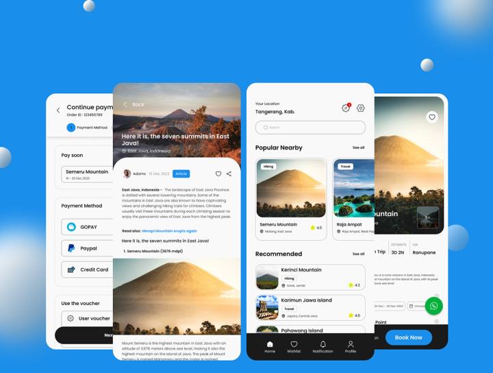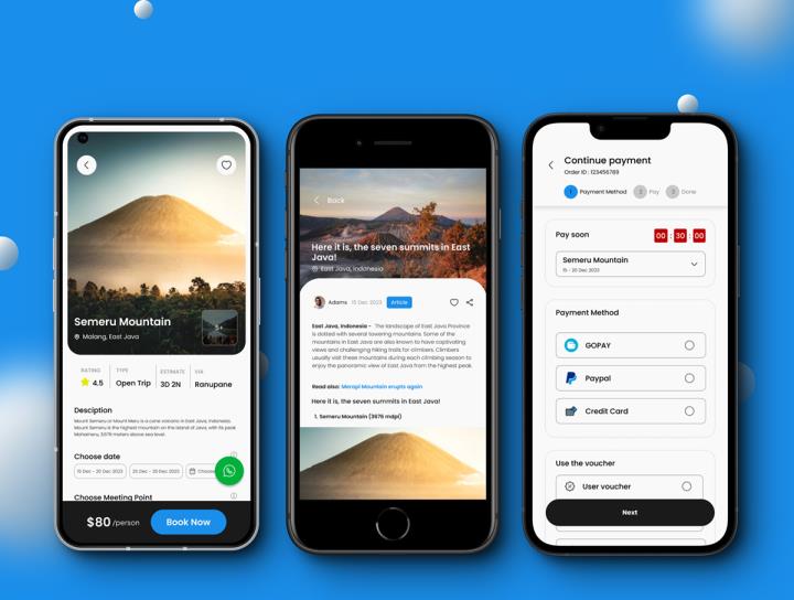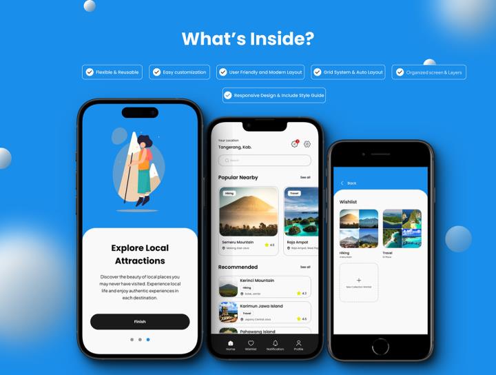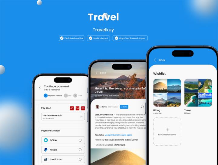 30页旅游,旅行app,提供令人难忘的山区,海滩和岛屿冒险体验figma源文件