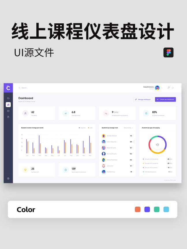 在线课程学习后台B端仪表盘设计分享figma