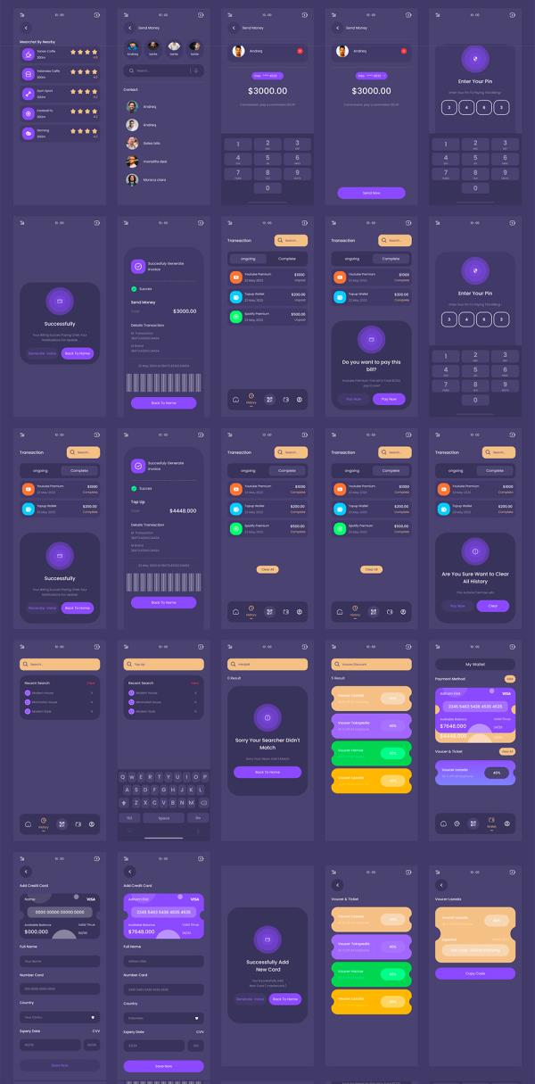 50页数字支付与钱包移动应用程序 Ui 套件模板figma格式