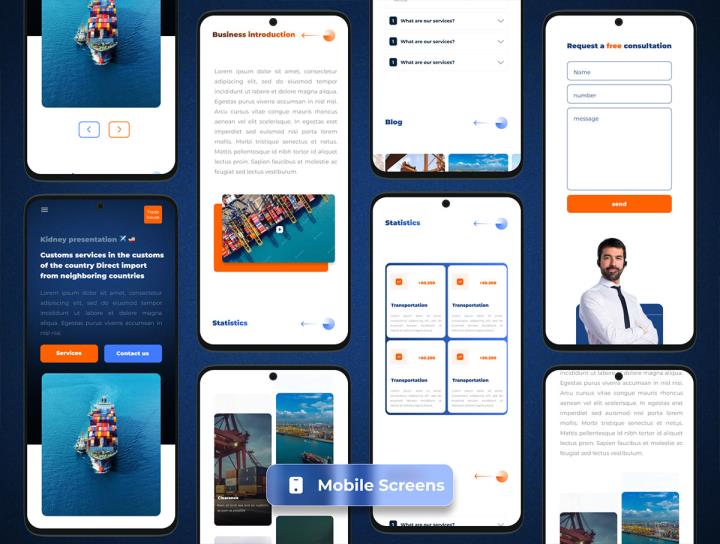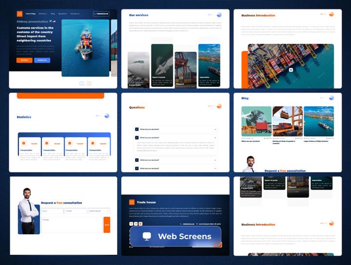 30页figma响应式进出口,空运和海运服务以及货物运输网页设计模板