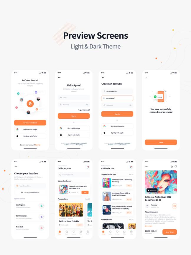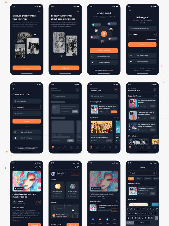 100页明暗高端的活动预订APP应用程序UI用户界面figma格式