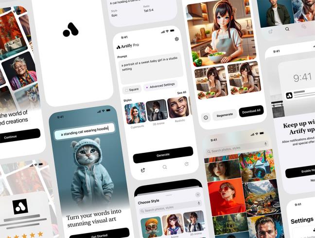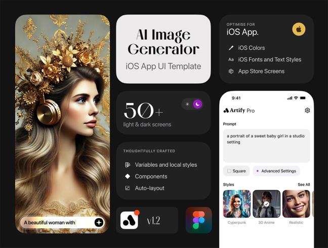 明暗50页AI人工智能图像生成器 iOS 系统用户UI界面套件figma源文件