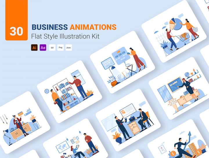 30个高品质的动画插图AE,AI,mp4,gif,png,json格式