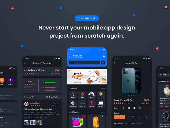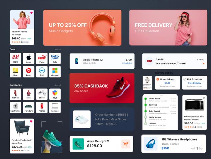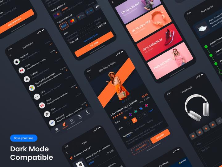 电商购物App应用 UI 套件sketch,xd,fig,studio