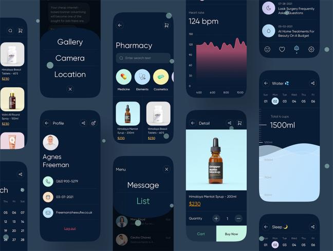 110页明暗高端医疗健康app设计UI素材Figma、Sketch格式