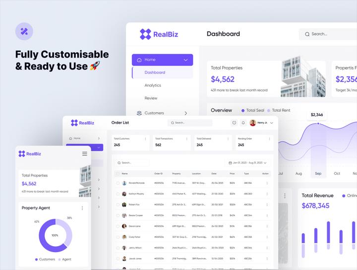 50页B端房地产后台管理仪表板 UI 套件figma源文件