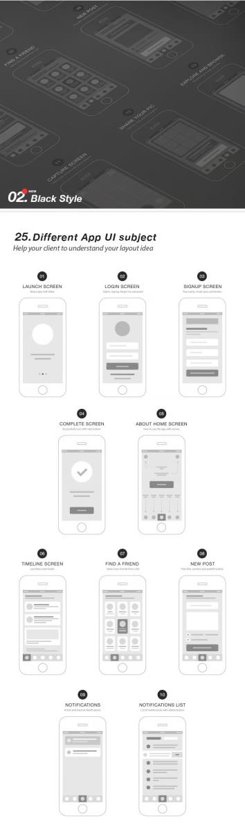 25页APP UI设计原型,线框图AI, PPT, PNG,EPS格式