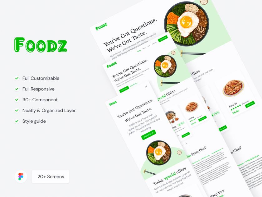 20页响应式餐饮美食类送餐官网设计figma源文件