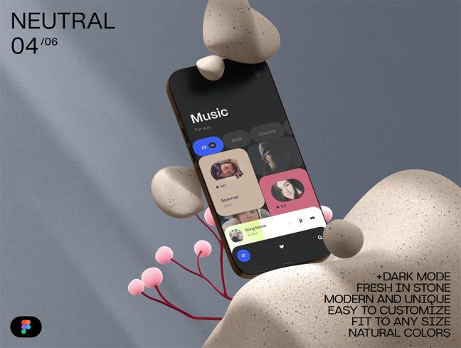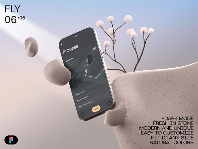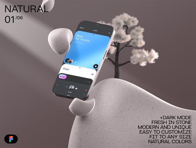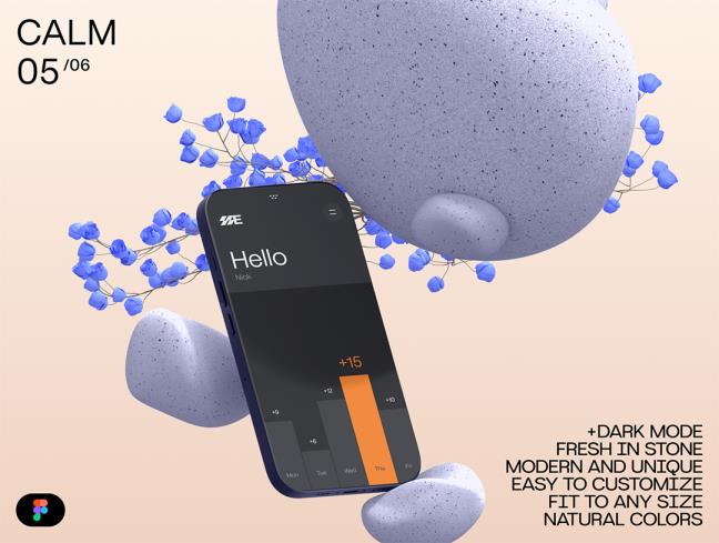 6个独特的智能手机,有机风格样机,模型模板figma源文件
