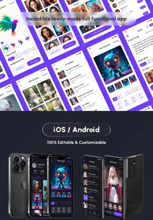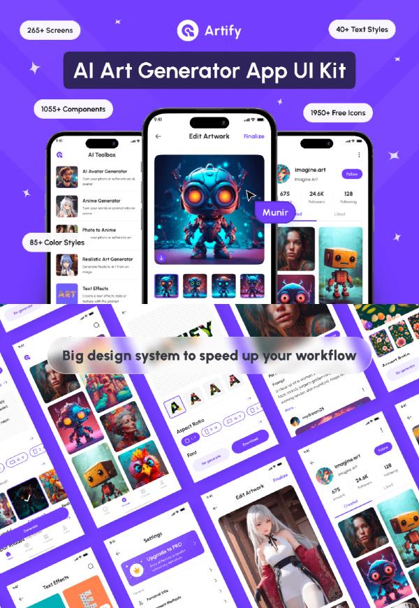 100+页,明暗双色AI绘画、AI艺术生成APP UI设计套件figma格式