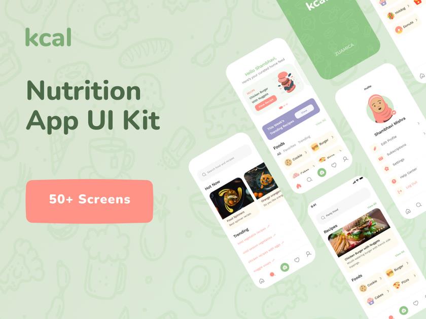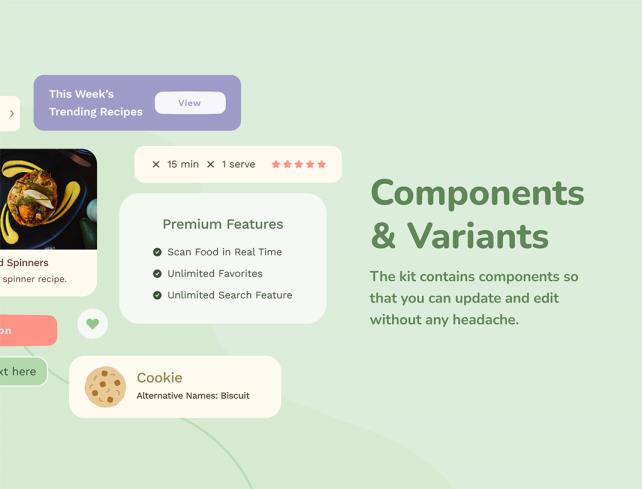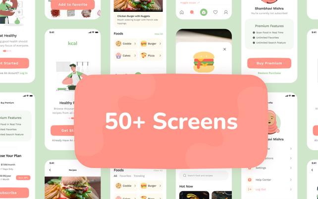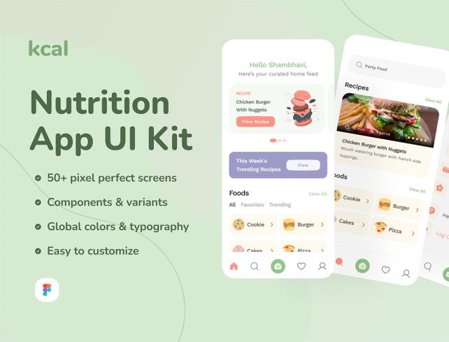 50页小清新设计风格,餐饮美食健康餐app素材figma格式