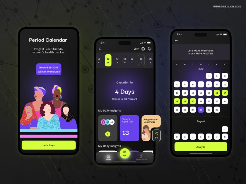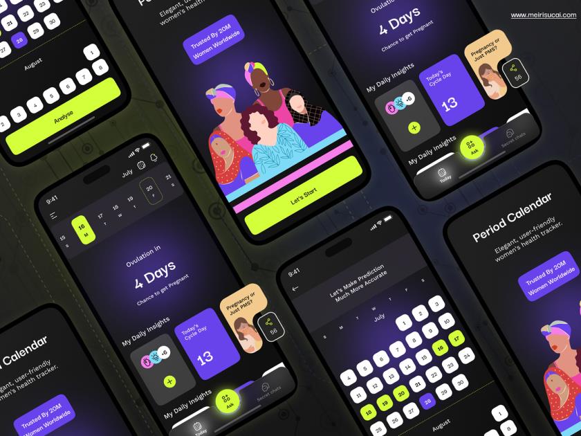 排卵周期跟踪,女性大姨妈AI记录app应用程序sketch,xd,figma源文件