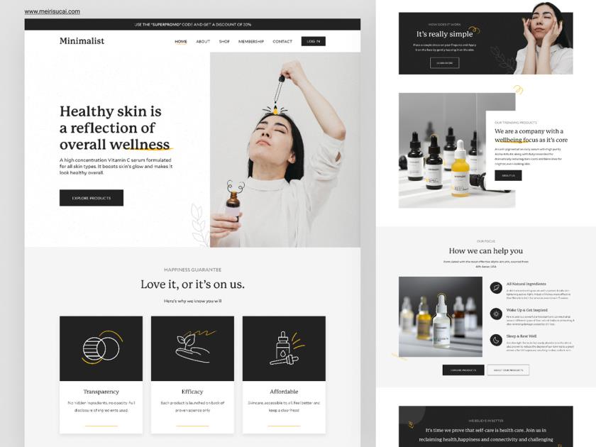 护肤品美容网站-极简主义风格sketch,xd,figma格式