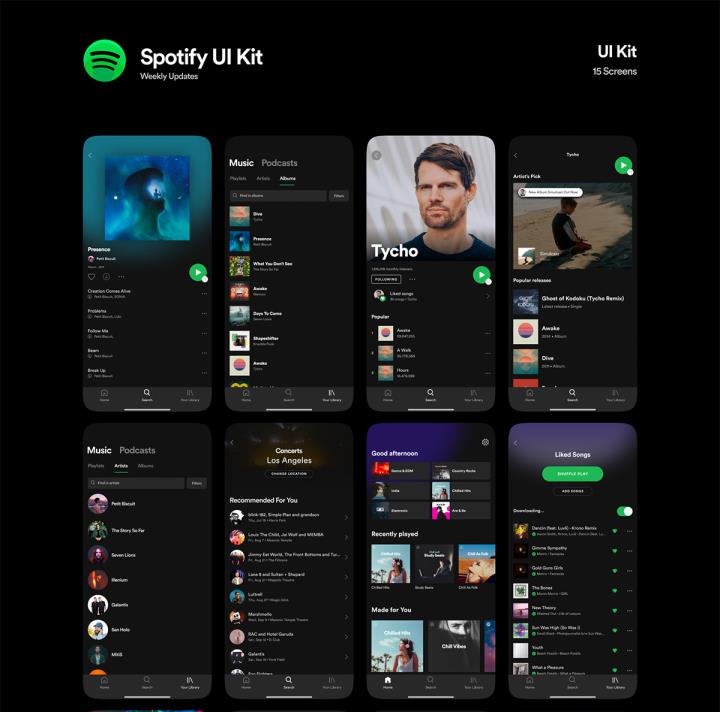 15页酷黑音乐播放器app素材figma源文件