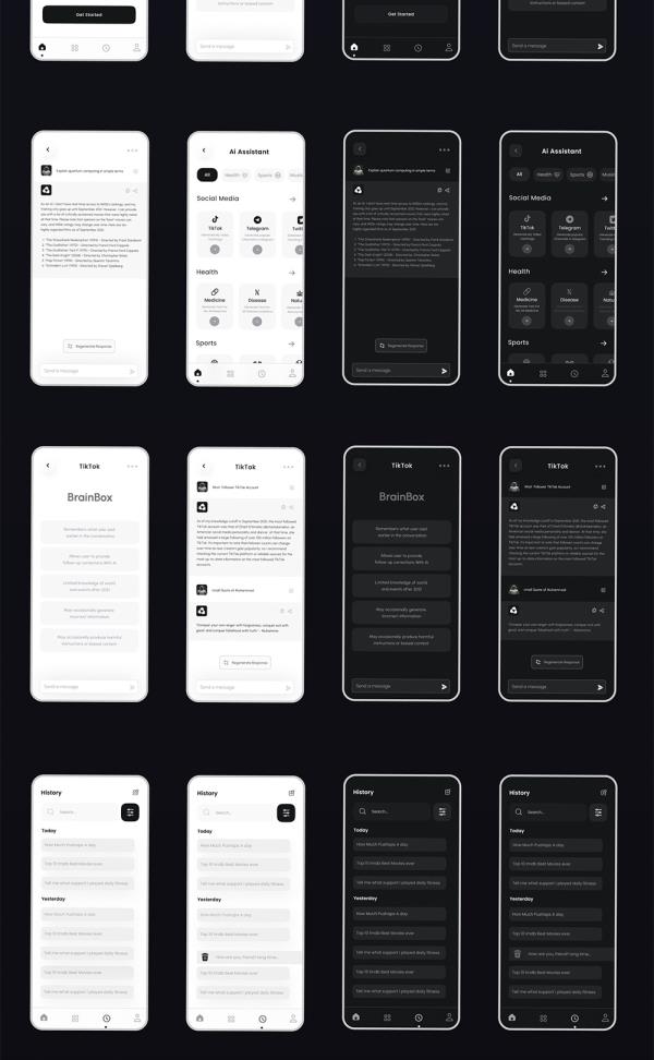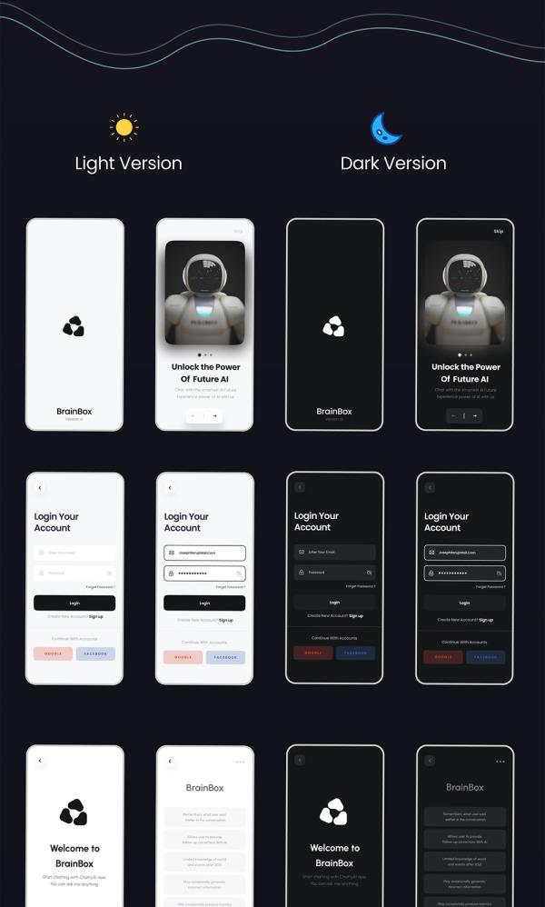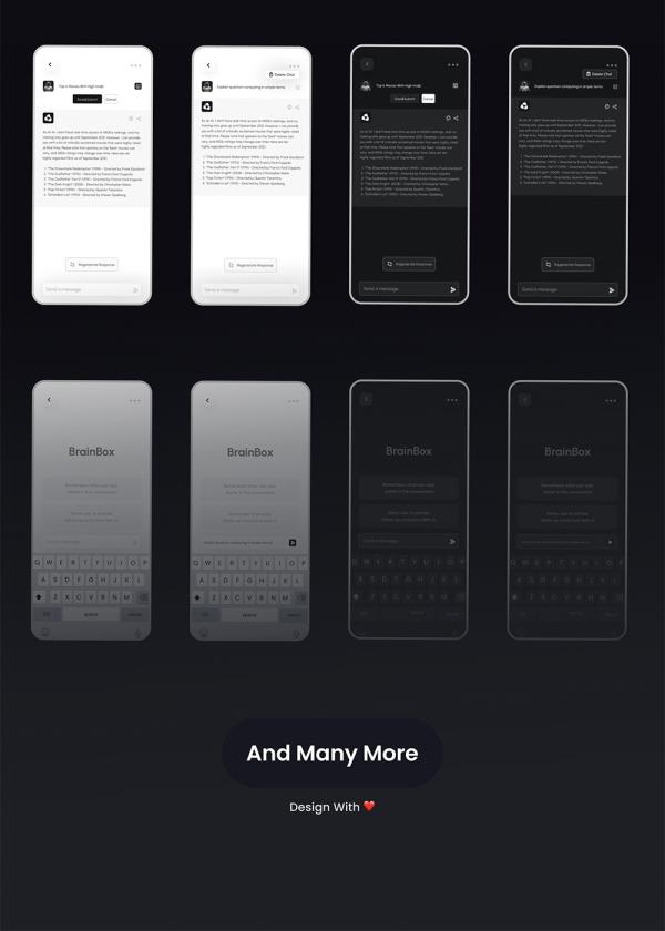 60多页,明暗设计人工智能聊天机器人app,小程序 UI 套件
