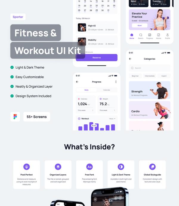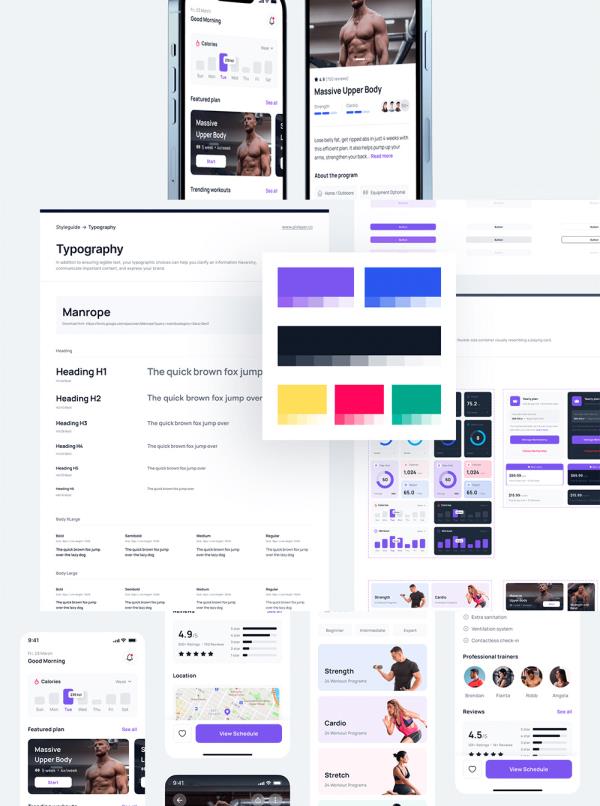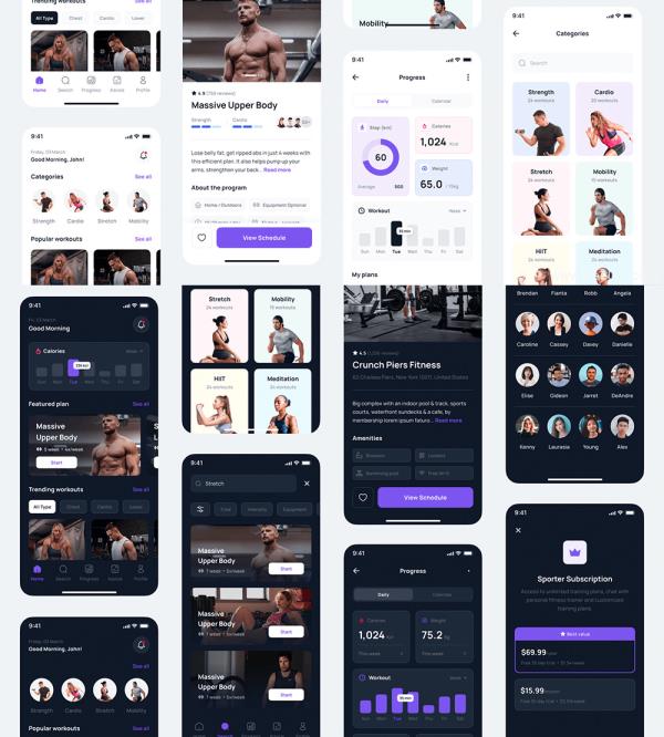 60页,明暗设计,简约大气运动健身锻炼App应用UI设计figma格式